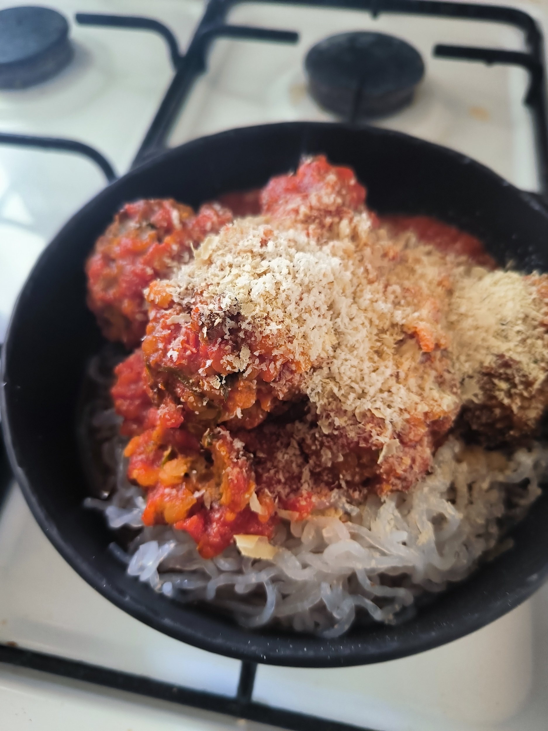 פסטה עגבניות כדורי בשר🍝 והפעם טבעוני וללא גלוטן.🍝״