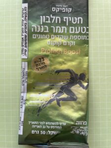 חטיף המבוסס על חלבון האפונה המוצלח מאוד. השומנים מחמאת שקדים ומחמאת קוקוס. המתיקות מבננה, תמרים וסטיביה. לא רע… את החטיף הזה, למיטב ידיעתי, ניתן להשיג רק בחנויות ״קופיקס״. לא ברור לי מדוע…